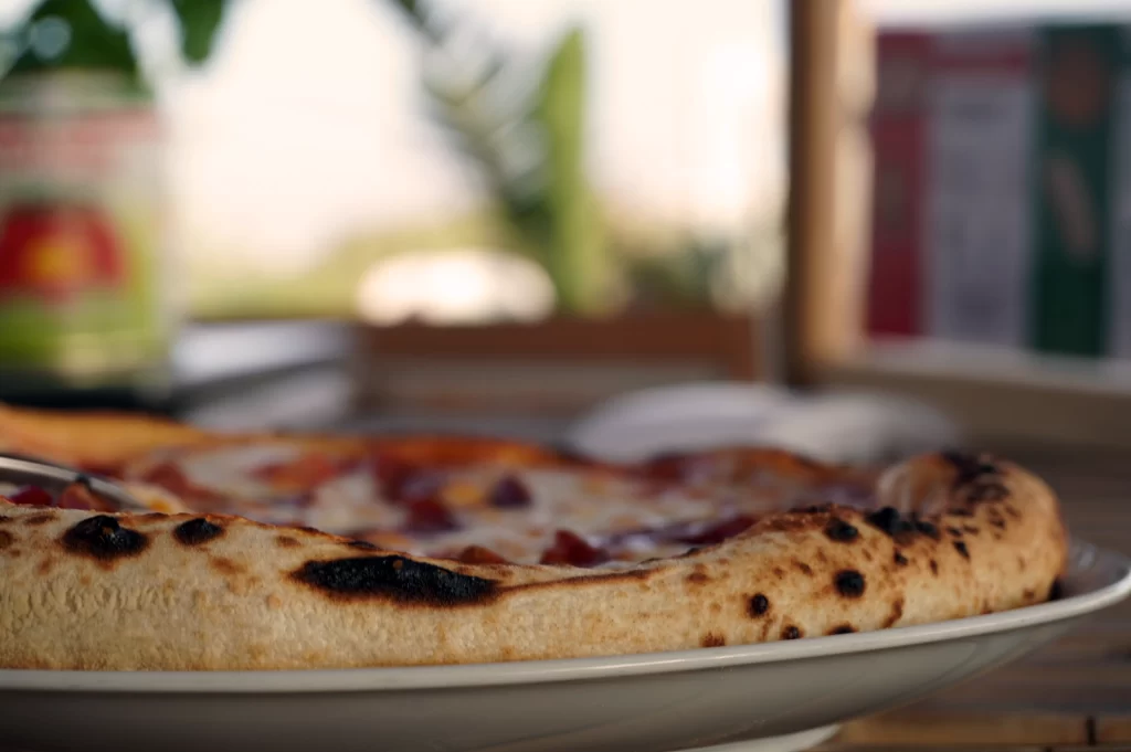 Pão Caseiro, Cebola Roxa, Tomate, Pimentos, Azeitonas, Mozzarella, Orégãos, Flor de Sal, Rúcula, Tomate Cherry, Vinagrete e Redução Baslâmica;
